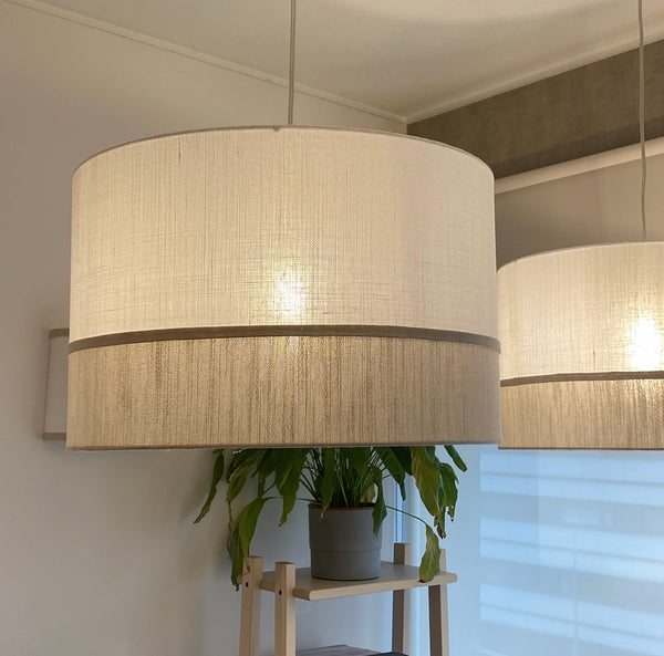 Candeeiro de Teto com dois Abat-Jours Cilindros com 2 fitas em Linho